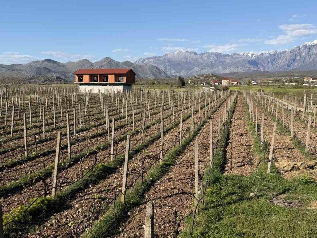 V roku 2019 začali po prvý raz produkovať víno vo väčšom rozsahu a o rok neskôr začala stavba vinárstva. To otvorili v roku 2021 aj za prítomnosti holandskej veľvyslankyne v Albánsku. Hlavná budova stojí uprostred vinohradov a z jej terasy vidíte vrcholy hôr. Počas našej návštevy boli ešte zasnežené, aj keď réva pod nami už pučala. „Jar začína stále skôr. Všetko je v ostatných rokoch posunuté o týždne,“ hovorí vinár a dodáva, že našťastie v tomto regióne nebývajú silné mrazy, kvôli ktorým by musel v noci udržiavať teplo medzi riadkami napríklad ohňom v špeciálnych sviecach.